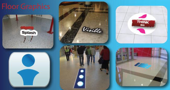 We print floor graphics for use in Tradeshow displays, shopping malls, shops, supermarket, offices, chemists, banking halls, factories from your artwork or from layouts custom designed by our artists. They are then laminated with a high tack adhesive on the back side. The result is a tough, skid resistant graphic that will stand up to heavy traffic.